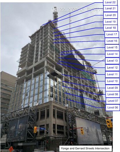 - Curtain wall installation ongoing at Level 8 and the south elevation from Level 4 to Level 9.