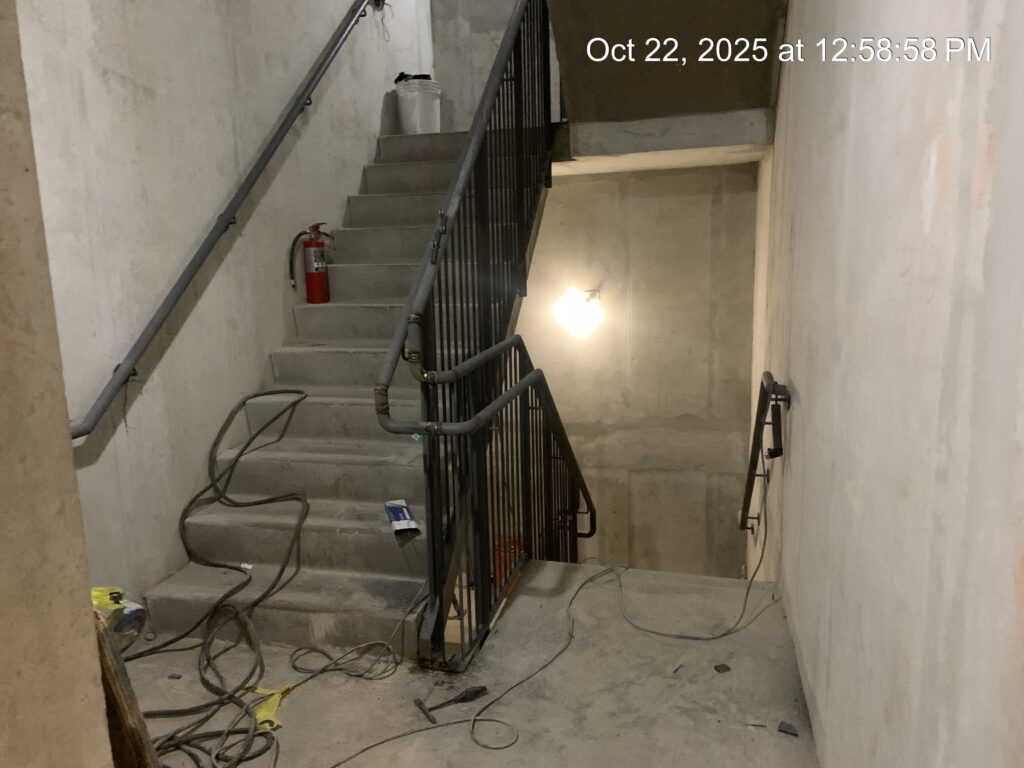 - Stair railings installation in progress from Ground Floor to Level 14.