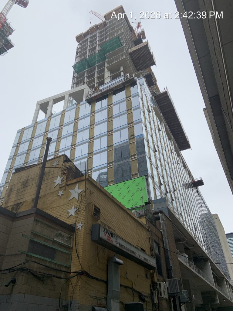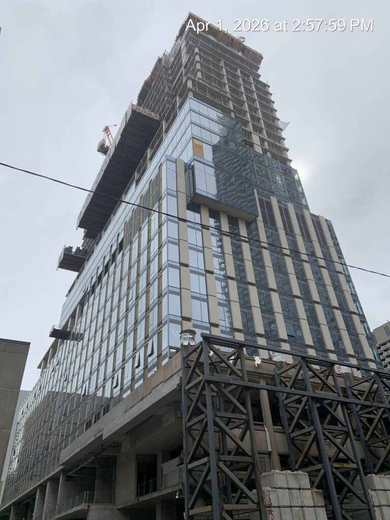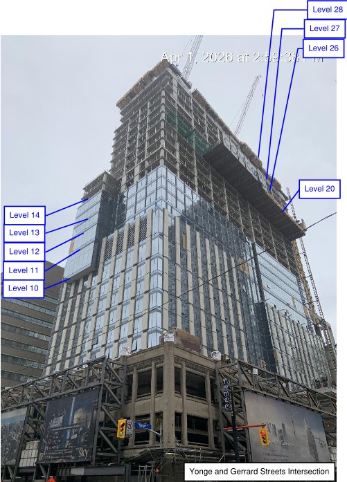 Curtain wall installation at level 15 ongoing.