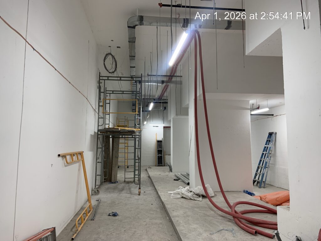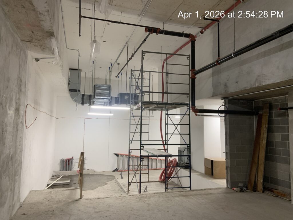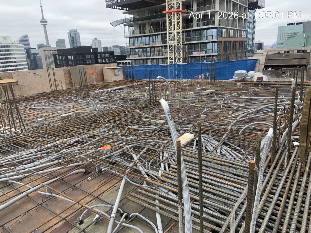 Electrical wire pulling in progress at level 25.